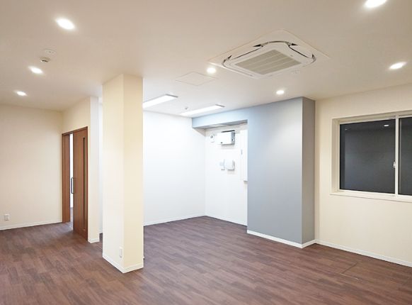 - スケルトン状態ではなく、内装工事をしなくてもよい状態になっております。一部棚などの什器やエアコンも設置済みのため、初期費用の軽減も可能です。